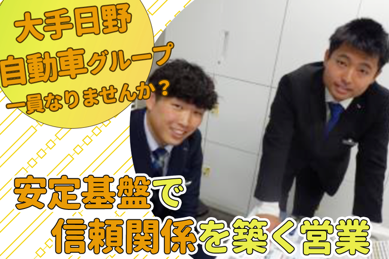 求めている人材 【必須条件】 ・普通自動車免許(AT限定可) 【歓迎条件】 ・営業や販売、接客の経験をお持ちの方 ・トラックやバスなど自動車に興味のある方 【こんな方にピッタリ】 ・ノルマに追われず、顧客とじっくり向き合いたい方 ・安定基盤のもと、長期的にキャリアを築きたい方 ・地域に根差して働きたい方