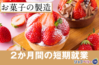 仕事内容 【14:00~始業】【午後の時間を有効活用】【短期】◎お菓子を扱うお仕事で、目で見て楽しい・癒される♪軽作業!未経験から始められます(*^^*) <仕事内容> (1)ケーキのトッピングや盛付けのお仕事 テーブルで何名かのグループでケーキにトッピングや盛付けをしてもらいます。 決められた量をすべて同じようにお願いします。 最後の工程の方はトッピングや盛付けが崩れないように、水あめを薄くぬります。 (2)オーブンを使用しての生地作り 決められた分量を測り枠に生地を流し込みます。 枠をオーブンへ投入。 オーブンから取り出した生地を、枠から外し生地が冷めるまでパレットで指定の位置に置いてもらいます。 (3)空き時間には調理器具などの清掃や片づけをお願いします。 立ち作業になります。 《職場環境》 外国籍の方活躍中! ●オーブン周りは暑いのでスポットクーラーあり。 ロッカー有り|休憩室完備 アピールポイント <仕事内容> (1)ケーキのトッピングや盛付けのお仕事 テーブルで何名かのグループでケーキにトッピングや盛付けをしてもらいます。 決められた量をすべて同じようにお願いします。 最後の工程の方はトッピングや盛付けが崩れないように、水あめを薄くぬります。 (2)オーブンを使用しての生地作り 決められた分量を測り枠に生地を流し込みます。 枠をオーブンへ投入。 オーブンから取り出した生地を、枠から外し生地が冷めるまでパレットで指定の位置に置いてもらいます。 (3)空き時間には調理器具などの清掃や片づけをお願いします。 立ち作業になります。 《職場環境》 外国籍の方活躍中! ●オーブン周りは暑いのでスポットクーラーあり。 ロッカー有り|休憩室完備 \充実した福利厚生/ ◎残業手当 ◎交通費支給(規定内) ◎週払い制度(週3回対応) ◎職場見学あり ◎車(マイカー)・バイク通勤可(無料駐車場あり) ◎制服貸与 ◎ロッカー・休憩室利用可 ◎福利厚生プログラム (宿泊、グルメ、ショッピングなど大幅割引が受けられる10万アイテムのメニューがあります。)