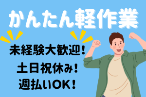 募集背景 ビジネス拡大による人員増強のため 仕事内容 この求人は採用特別推進案件です。 お仕事内容は 角材やバルブの洗浄や湯上げ作業です 難しい作業は一切ありません! 製品を洗浄液に漬け、カゴを持ち上げるだけ! 未経験でも丁寧な研修あり!イチからしっかり教えてもらえますので 安心してお仕事をスタートできます! 身体を動かすのが好きな方、ぜひご応募お待ちしております! ・未経験&ブランクのある方も活躍中! ・かんたん軽作業 ・長期勤務OK ・昇給あり ・駅近 ・自転車・バイク通勤OK ・20代・30代・40代男性活躍中 ・ロッカールーム&休憩所完備 ・週払いOK ・土日祝休み ・GW、夏季休暇、冬季休暇 ・休日・深夜・残業割増あり [こんな人が活躍] 株式会社Rian Japanは、物流を中心に人材派遣・紹介を行う総合人材サービス会社です。 未経験から始められる仕分けやフォークリフト作業、現場管理など幅広い職種を募集しています。