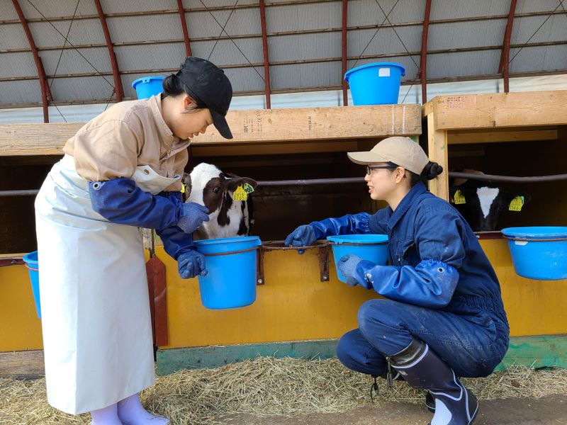 仕事内容 「おはよう、今日も元気?」赤ちゃん牛の“育ての親”になるお仕事。家電付き社宅で、理想の地方暮らしを叶えませんか? ✨女性に選ばれる3つのポイント✨ ✅1. 命の成長に携わるやりがい 預かるのは生まれたばかりの仔牛たち。ミルクをあげたり、体調をチェックしたり。毎日接していると、少しの変化にも気づけるようになります。「無事に大きくなってね」と親のような気持ちで成長を見守る、優しさが活かせるお仕事です。 ✅2. 牧場では珍しい「規則正しい生活」 「朝が早すぎる」「深夜に呼ばれる」といったイメージを覆す6:00〜18:00勤務で休憩は4時間。残業も少なく、仕事終わりのプライベートもしっかり確保。自炊を楽しんだり、十勝の自然を満喫したりと、心にゆとりを持って働けます。 ✅3. カバン一つで新生活スタート! ピカピカの社宅(1DK)**をご用意!冷蔵庫、洗濯機、電子レンジなどの家電も完備しているので、引越し費用を抑えて移住できます。 ✨仕事内容  ̄ ̄ ̄ ̄ ̄ ̄ ̄ ̄ ̄ ̄ ̄ ̄ ̄ ̄ ̄ ̄ ̄ 生後2ヶ月まで仔牛を育てるお仕事です。 1頭1頭にお家があるハッチ牛舎を担当します。 生後2カ月までの仔牛を担当するので安心して業務に取り組んでいただけます。 ✅ミルク・餌やり: 1頭1頭にバケツを利用してミルクを与えます。 慣れるまでは補助しながらミルクを飲ませます ✅体調チェック: 食欲があるか・体温が高くないか・下痢していないかなど 毎日の様子を確認します。 状況に応じて適切に対応していきます。 ✅ハッチの清掃: 糞尿などを吸収するおが粉を小型特殊機械を使用して補充していきます。 ✅仔牛の導入: 新しくやってきた仔牛たちを優しく迎えてあげてください。 ✨一日の仕事の流れ  ̄ ̄ ̄ ̄ ̄ ̄ ̄ ̄ ̄ ̄ ̄ ̄ ̄ ̄ ̄ ̄ ̄ 06:00 <ミルクやり>全頭分のミルクを作り、1頭1頭バケツに入れて与えていきます。 07:00 <水やり>ミルクを与えたバケツを洗い、水を与えます。 07:30 <餌・草やり>全頭に配合飼料と草を与えます。 08:30 <体調管理>牛の様子や体温を確認しながら適切に対応します。 09:30 <おが粉補充>ハッチ牛舎の寝床を整えます。 10:30 <休憩>午前の作業が終わり次第休憩に入ります。午後は14時から開始します。 14:00 <ミルク・水やり>午前同様ミルク・水を与えます。餌草やりは午前のみです。 16:00 <体調管理>牛の様子や体温を確認しながら適切に対応します。 18:00 <業務終了>作業が終わり次第退勤です!お疲れさまでした! ✨入社後の流れ  ̄ ̄ ̄ ̄ ̄ ̄ ̄ ̄ ̄ ̄ ̄ ̄ ̄ ̄ ̄ ̄ ̄ 入社後は先輩の指導のもと、仕事を見て学びながらスタートします。 早ければ3〜4カ月で一つの牛舎を担当することも可能です。 担当している仔牛達の体調を判断できるように働きながら 知識をアップデートしていただけます。 ✨手厚いUIターンサポート  ̄ ̄ ̄ ̄ ̄ ̄ ̄ ̄ ̄ ̄ ̄ ̄ ̄ ̄ ̄ ̄ ̄ ・社宅利用可能(月額20,000円) ・家電完備(冷蔵庫・洗濯機・電子レンジ・エアコンなど) ・単身用・家族用どちらもあり!(1DK・2LDK・3LDK) ✨働く環境  ̄ ̄ ̄ ̄ ̄ ̄ ̄ ̄ ̄ ̄ ̄ ̄ ̄ ̄ ̄ ̄ ̄ ・「十勝晴れ」と呼ばれる晴天が多く、雪も比較的少ない ・帯広駅まで車で1時間弱、札幌へはJR・車どちらでも約2時間半と好立地 ・とかち帯広空港から羽田便あり、道外アクセスも良好 ・新千歳空港までのJRで2時間弱と好立地 ・公園や川釣りスポット多数、アウトドア好きに最適