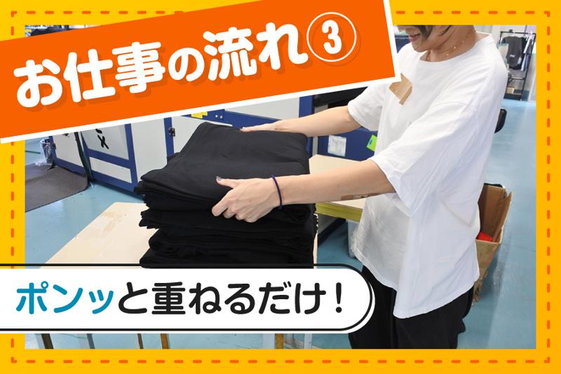仕事内容: 【お仕事詳細】 <20代~50代まで幅広い世代の方が活躍中!> <主婦(夫)さん応援!家庭などと両立可能> <ブランクOK/久しぶりのお仕事復帰も応援> <コツコツ・モクモクできるシンプルWORK!> <週3日~&1日4h~OK!家事・予定と両立◎> <面接時に履歴書持参!/私服で面接もOK!> <最新のアパレルブランドの洋服が見れる> <音楽アーティストの物販Tシャツなども> <仕事内容> アパレル商品の品出し・検品・梱包をお任せします。 どれも手順が決まっているので、 未経験の方でもご安心ください。 【品出し】 ・指示書を見ながら、指定されたサイズや枚数を用意 【セッティング作業】 ・無地Tシャツをプリント機械にセット ・プリント後のTシャツを乾燥機へセット 【検品・梱包】 ・流れてきた洋服のプリントに不備がないかチェック ・10枚ずつまとめて段ボールへ入れ、テープで封をする作業 どれも未経験からできる簡単なお仕事ばかり! \\ 未経験でも安心な理由 // ・作業はシンプル&分かりやすい ・チーム作業なので、一人で抱え込むことはありません ・分からないことはすぐに聞ける、落ち着いた雰囲気 「久しぶりのお仕事で不安…」 そんな方も、先輩スタッフがしっかりフォローします! \\事業内容・仕事の魅力// 有名ブランドやアーティストの 物販用Tシャツなどのプリント加工を行っています。 【やりがい】 自分が関わった商品が、 お店やライブ会場に並ぶワクワク感があります。 【安定性】 需要が伸び続けており、 安定して長く働ける成長企業です。