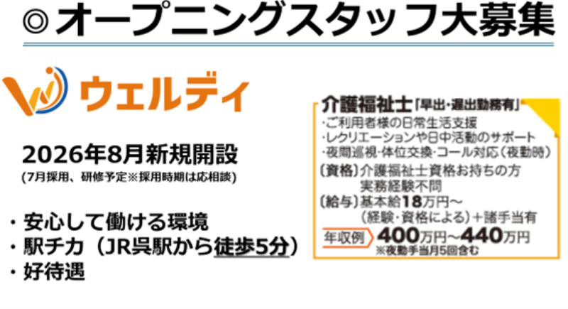 2026年8月開設//JR呉駅より徒歩5分、年収400万~!
