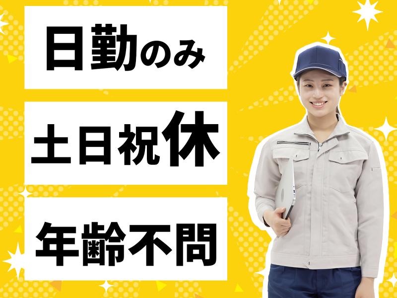 未経験歓迎!土日祝休み!毎日定時(残業・休出なし)!製品を成型、加工する仕事です!幅広い年齢層の方が活躍中!!