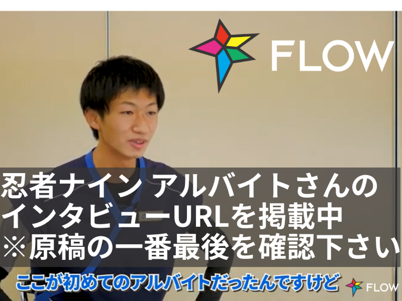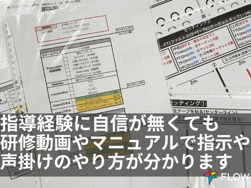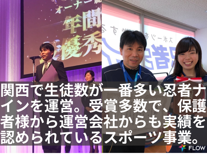 アピールポイント: * 子どもたちの成長を一番近くで感じられるのが、この仕事の大きな魅力です。 運動神経の良さよりも、「がんばりをほめたい」「前向きな声かけをしたい」という気持ちを大切にしています。 * レッスンは週1回・1日あたり2〜3時間程度のコンパクトな時間帯。 学校・子育て・本業の合間にも無理なく続けられるボリュームです。 * 担当するのは、あくまでメインインストラクターの“右腕”ポジション。 レッスン設計や専門的な指導はお任せできるので、運動指導が初めての方でも始めやすい環境です。 * 事前研修と現場でのOJTを通して、安全面のチェックポイントや声かけの工夫などを丁寧にお伝えします。 最初は簡単な準備・見守り業務から入り、徐々にできることを増やしていただきます。 * 運動教室「忍者ナイン」だけでなく、英語・プログラミング・学習塾など、 複数の子ども向け教室を運営するNPO法人FLOWの教室です。 教育・保育の分野で経験を積みたい方にも、将来につながる実践の場になります。 * 学生さんや主婦(夫)さん、社会人の副業として参加している方など、 さまざまなバックグラウンドのスタッフが在籍。相談しやすく、あたたかい雰囲気の職場です