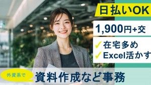 高時給1900円×在宅多め*Excel活かせる事務のお仕事*英語はご抵抗なければOK