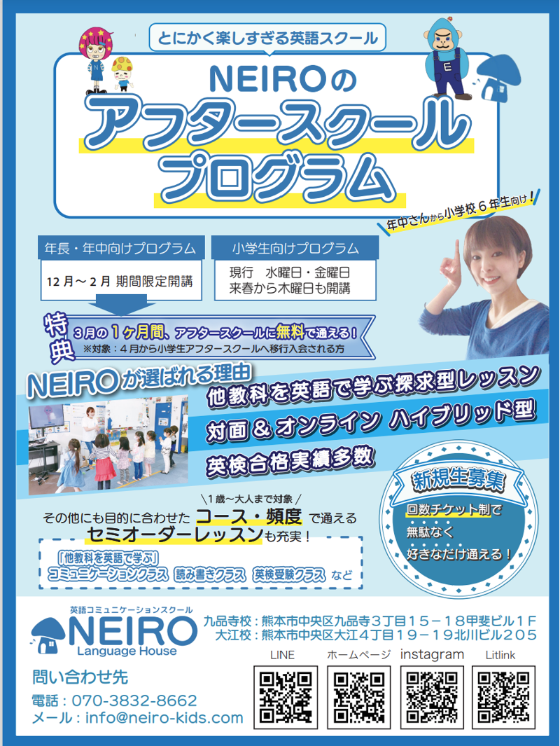 アピールポイント: 1歳~18歳向け子ども英語クラス・大人クラス・保育園出張英会話の講師の補助業務となる、送迎ドライベーのお仕事です。生徒の小学校の下校時間に合わせて学校までお迎えに行き、教室へ送り届けていただくお仕事です。車は当スクール自車(普通車)を使用していただきます。日本人スタッフ2名、外国人スタッフ5名在籍 子どもとの関わりが8割のお仕事内容です。 在籍児童は小1~小6までのお子様で、 送迎範囲は北区八景水谷近辺~中央区~南区田迎近辺となります。生徒達はとても明るく元気で、がんばりやさんです!エネルギーをたくさんもらえると思います♪