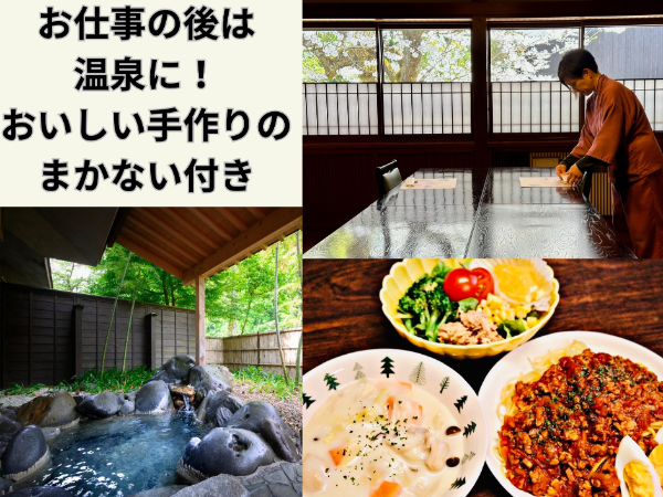 ≪泊まりなし≫手当の充実でお給料UP☆勤務後温泉OK☆おいしい賄いあり!シフトの相談もOK!落ち着いた雰囲気の旅館で非日常を味わいながら働きませんか♪