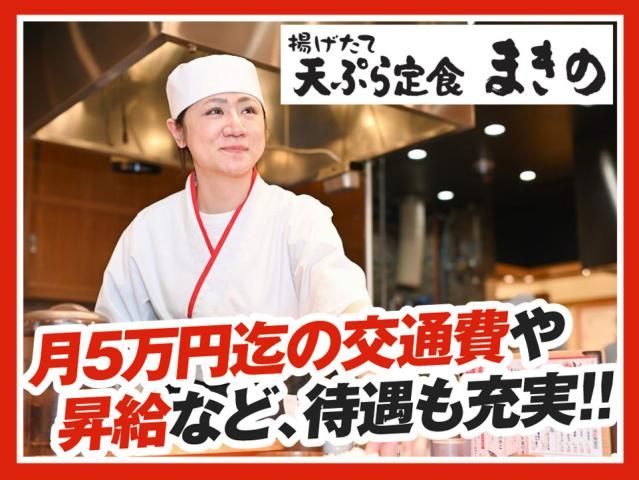 タイトル 土日祝時給1300円~★【ランチ帯♪】50代・主婦(夫)さん活躍中!週2日~/1日3h~OK◎ 職種 キッチン・ホールスタッフ(ランチタイム) 雇用形態 アルバイト・パート 仕事内容 ★10月にオープンしたばかり!!★ まだ新しい店だから、店内も厨房もピカピカ! 新しい設備&キレイな環境で気持ちよく働けます。 スタートの近い仲間と一緒に成長でき、 注目度の高い店で働く特別感もあります♪ ◆◇天ぷらまきので働いてみませんか? 揚げたてのおいしさにこだわる天ぷらのお店です。 お客さまのお食事に合わせてご提供する都度揚げを実施することで、一番おいしい揚げたてを提供しています。 ◆◇活気と季節や旬のものを感じられる環境! たくさんのお客さまにご利用いただいている天ぷらまきのでは、 注文を受けてからお客さまの目の前で天ぷらを揚げます。 オペレーションがしっかりしているので、お客さまとのやりとりはスムーズ! 季節限定のメニューがあって「旬」の味に触れることができます! ◆◇未経験・ブランク有でも充実感とやりがいを感じられる! 初バイト・未経験OK! 挨拶の仕方や簡単な盛り付け、天ぷらを揚げるなど、 ステップごとの丁寧なトレーニング完備! 1つ1つできることが増えていく達成感があります。 1日やりきった時には充実感がありますよ◎ 最新の厨房機器や食洗機を導入しているので、体力的な負担も軽減。 シニアスタッフも無理なく長く働いています。 アルバイト・パートがはじめての方や、 子育て後のブランクがある方もすぐに慣れやすい職場環境です! ※個人差あり ………………………… ●お客さまをお迎え 笑顔と元気な挨拶でお迎えし、お客さまをご案内します。 平日は近くでお勤めの方や、 土日はご家族連れのお客さまが多くいらっしゃいます。 地元の常連さんも多く、ほっこりとした雰囲気! ●天ぷらの調理 注文が入ったら海老や野菜などを揚げ、 出来たてのおいしさを提供します。 ご飯やお味噌汁の準備もお願いします。 ●レジ業務 タッチパネル式だから操作も簡単♪ お客さまの「ありがとう」が直接聞けるのも魅力です。 ●洗い場/店内清掃 食洗機を積極的に活用!手荒れを防いで効率よく作業◎ お客さまとスタッフが気持ちよく過ごしていただくために店をキレイに。 ☆☆☆天ぷらまきのの【3つの推しポイント】 1.高時給1250円&働きやすさピカイチ! 「扶養内で働きたい」「夕飯準備まで」「ガッツリ稼ぎたい」など ライフスタイルに合わせて働けます!短時間の勤務もOK◎ ★週2日~、1日3h~OK!平日・土日のみ、土日祝休みなど、希望は最大限考慮します。 ★給与は1分単位で計算!頑張った分はしっかり還元。 2. スタッフ想いの嬉しい待遇が満載! 1食120円で800円分食べられる絶品まかない有! 勤務後や休憩中においしい天ぷらが食べられる! ★交通費月5万円まで支給。 ★制服貸与。 3.幅広い年代が活躍!温かい協力体制! 10代・20代・30代・40代・50代・60代と幅広い年代のスタッフが活躍中! 学生さん、パート主婦(夫)さん、フリーターさん、中高年の方まで、 様々な仲間が協力し合い、チームワークを重視して、学び合える環境が魅力です。 ★主婦パートさん、大学生さん、シニアの方も活躍中!
