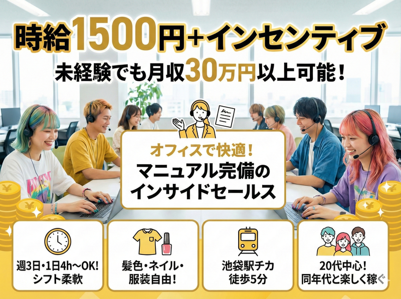 仕事内容 ✨同年代の仲間と楽しく働く ✨髪色・ネイル・ピアス自由 ✨イベントや飲み会で盛り上がる \友達作りにも最適!/ 電話を使ったご案内業務です。 厳しいノルマはありません! みんなで楽しく目標を目指します。 【具体的な業務内容】 ✅お客様へのご案内電話 ✅チームでの作戦タイム ✅成功した時のハイタッチ 【入社後の流れ】 優しい先輩がマンツーマン指導。 分からないことはすぐに聞ける アットホームな環境です。 バイトデビューの方も多数活躍中! 仕事終わりにご飯に行ったり 休日に遊びに行ったり とにかく仲が良いのが自慢です。 ■採用担当者からのメッセージ 青春みたいな職場です 「職場の人とこんなに仲良くなれるなんて」 と驚くスタッフも多いです。 誕生日会や季節のイベントなど 楽しみがいっぱい! 楽しくお金を稼ぎたい方、 ぜひ一緒に働きましょう。 【✨入社者インタビュー】 ①元アパレル/入社1年目/24歳 髪色もネイルも自由で、毎日好きな服で働けるのが最高です。同世代が多いので、休憩時間は常に笑い声が飛び交っています。仕事というより、サークルの仲間と一緒に目標を追いかけている感覚に近く、毎日会社に来るのが楽しみです♪ ②元飲食店/入社2年目/26歳 以前は一人で黙々と作業する仕事でしたが、ここは全然違います。アポが一本取れるたびに、周りが「ナイス!」とハイタッチしてくれるんです。困った時はすぐに助けてくれる温かさがあり、チームで戦う楽しさを初めて知りました♪ ③異業種からの転職/入社3年目/32歳 最初は「20代中心のノリ」についていけるか不安でしたが、杞憂でした。変な上下関係がなく驚くほどフラット。仕事終わりにご飯に行ったり、休日に遊んだり。人間関係のストレスが一切なく、自然体で働けるのが魅力です。