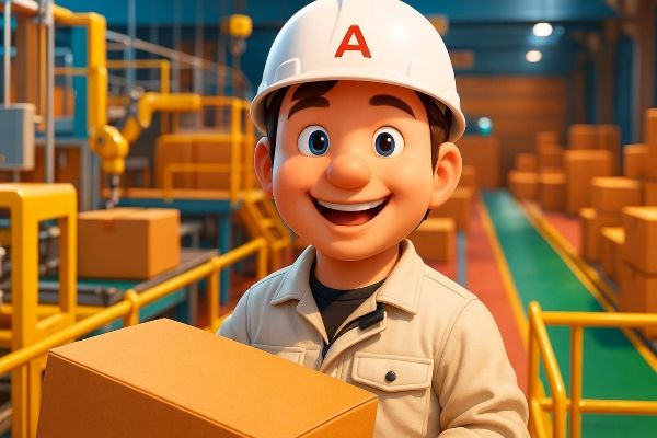 工場での紙製品の加工作業