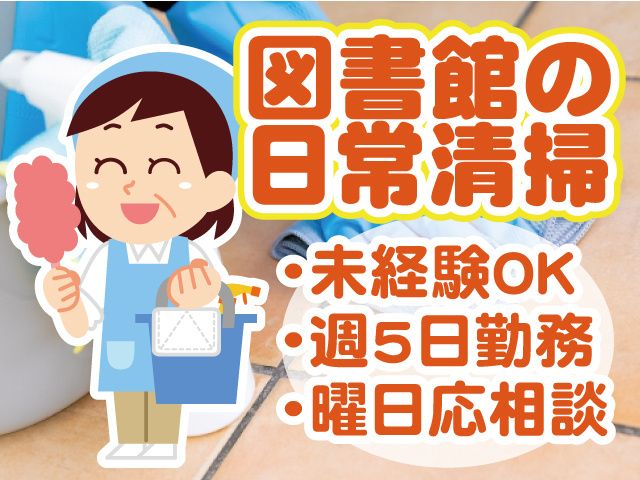 仕事内容 【おすすめポイント】 ・未経験者歓迎 ・週5日のレギュラーワーク※曜日相談に応じます ・中高年層(ミドル・シニア層)活躍中 ・女性活躍中 千葉駅周辺の図書館の清掃 ・フロア内の掃き掃除 ・掃除機掛け ・トイレ清掃 ・ゴミ回収 など 清掃員未経験の方であっても安心。 丁寧な研修でしっかりサポートします! 重量物や特殊な機械の扱いもありません。 【しっかり稼げる週5日勤務】 勤務曜日は相談可能。 ゆったり2時間の休憩があり、 夕方には仕事を終えられるので、 体への負担も少なめです。 【幅広い年代の方が活躍中】 スキマ時間に働きたい主婦(主夫)パートさんから 定年退職後に適度に体を動かしながら、少しだけ働きたい方まで幅広く活躍中。 ブランクもOK! Webからはもちろん、お電話でのご応募もOK。 まずはお気軽にご連絡ください。 Tel 047-432-7282