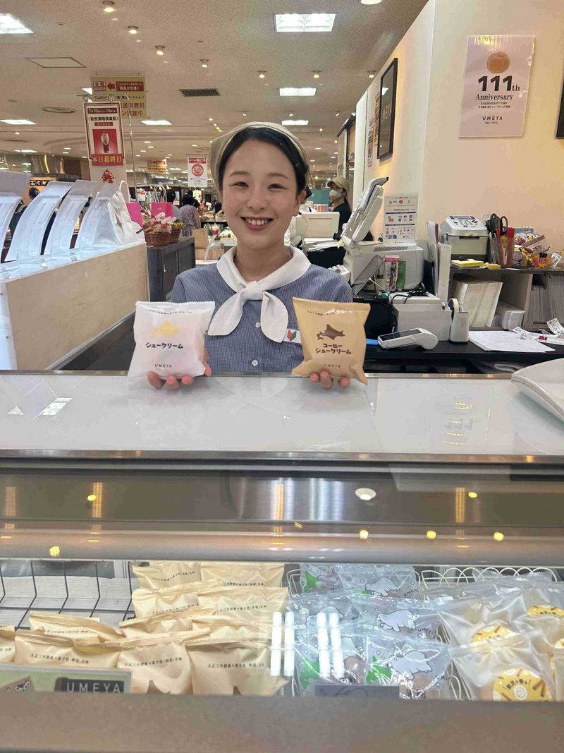 旭川の老舗シュークリームの【梅屋】のお菓子の販売スタッフ