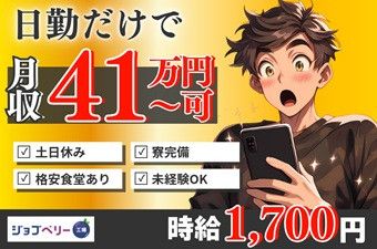 【川越市】大量募集!日勤で月収41万以上可!高時給1700円!!30代未経験で始めた男性活躍中◎土日休み!食堂も安くて助かる♪寮の用意もバッチリ!遠方の応募者も是非!週払い制度あり