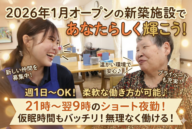 2026年1月オープン/週1日~OK/21時〜翌9時の夜勤