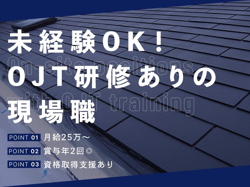 必要資格・経験 <必須> ・普通自動車免許(AT限定可) →取得予定の方もOK <歓迎> ・屋根、樋(配管)工事の知識・経験 ・1級建築板金技能士 ・2級建築施工管理技士 ・職長教育や玉掛け、高所作業車、 研削といしの取替え等業務などの資格 ・職長経験(1年以上) 他業種の現場作業経験がある方や、 未経験でも現場作業に興味があり、 手に職をつけたい方は歓迎します! 〈POINT〉 ・40代活躍中 ・未経験者歓迎 ・経験者歓迎 ・ブランクOK ・有資格者歓迎 ・40代以上応募可 ・50代以上応募可 ・学歴不問 ※18歳未満の方は22時までの勤務となります。