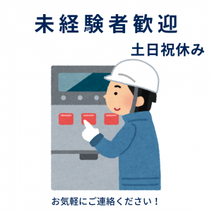 インフォメーション 土日祝休み&大型連休あり! 世界的メーカーの工場内勤務! 駅ちかで通勤もらくらくです!!! 作業はシンプルで、 未経験からスタートした方がほとんどです。 アピールポイント ★株式会社BEST JOBsは高待遇にて皆さんを受け入れております★ [1]未経験でも大丈夫!!研修制度充実◎ 未経験でも就業できるお仕事多数あります. 研修も充実しているので安心してスタートできます! 大切なのは「やる気」と「笑顔」.初めは誰でも未経験者です. ハローワークでお仕事お探しの方も必見! あなたに合った働き方が可能です. [2]働く人の気持ちが一番!! 安心して安全に働ける職場. そして.皆さんが笑顔で働ける職場. スタッフのみなさんが働きやすい職場づくりに取り組んでいます. +しっかりバックアップ!サポート力が違います!! [3]サポートが違います!! 働いた分だけきちんと収入になる. 頑張って働くスタッフを正当に評価する. 応募から就業中まで.働く方の心もしっかりサポート! さまざまな形であなたをサポートいたします♪ ◎各種保険◎ 社会保険(健康保険.厚生年金)および労働保険(労働者災害保険.雇用保険) ◎前払い(規定あり)◎ 前払い制度がスタートしました! ご希望の方はお気軽にお声掛けください。 ◎有給休暇◎ 勤務開始6ヶ月後. その後は1年ごとに継続して就業していただいた方へ その稼動日数に応じて付与いたします. ◎定期健康診断◎ 一定の条件を満たした方には1年に1回定期健康診断を実施しています. ◎交通費支給◎ 就業先によって異なりますので事前に求人情報内で.もしくは担当者にご確認下さい. ◎正社員登用制度◎ 働くみなさんの将来までもサポートしたい!という思いから. 株式会社BEST JOBsは経験や学歴関係なくみなさんの頑張りを正当に評価いたします. ◎制服無償貸与◎ 制服が必要な職場の場合.貸し出しを行っております. ◎幅広い世代が活躍できる◎ 20代.30代.40代.50代.60代と若年層からシニア世代まで活躍中です. 高時給案件.無資格歓迎.Wワーク歓迎.扶養内勤務歓迎.経験不問求人など.様々なお仕事も取り扱っております. ◎BEST JOBs求人サイト◎ https://ten.1049.cc/tp/best-jobs/sp/ 新着求人.短期アルバイト.交代勤務.夜勤.シフト.軽作業スタッフ.工場内作業など.ご覧いただいている求人以外のお仕事も随時掲載しております. まずは一度お問い合わせください.