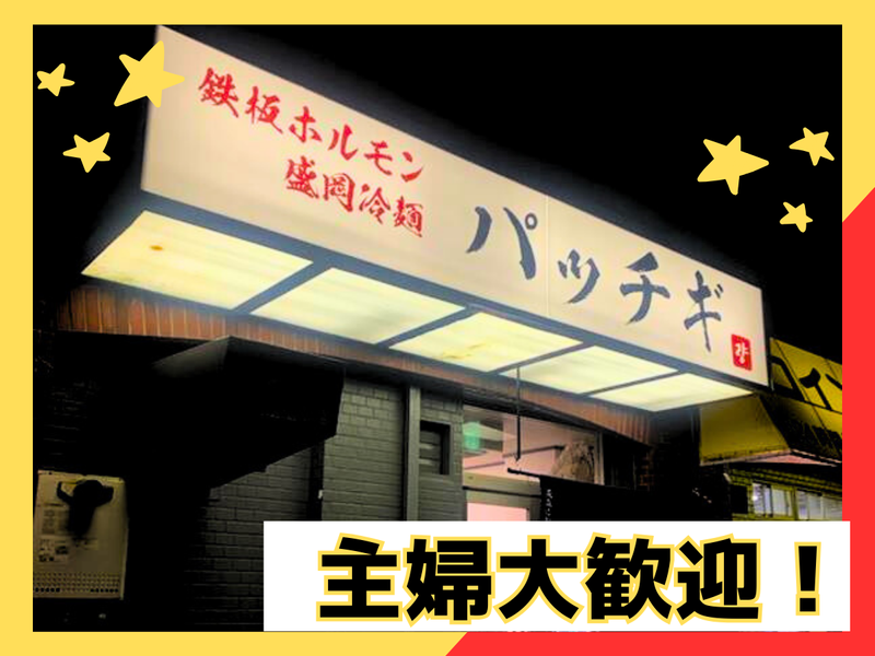 仕事内容 \ご家庭でお料理される方、切る・焼く・煮るなどの料理経験がある方歓迎/ お店での勤務経験はなくてOK! ✅皆勤手当あり(勤務時間×100円) ✅希望シフト制 ✅無料賄いあり!持ち帰りもOK! ✅髪色自由!オシャレも楽しめちゃいます! ◆ 仕事内容  ̄ ̄ ̄ ̄ ̄ ̄ ̄ ̄ 鉄板ホルモン屋でキッチン業務をお願いします。 ◎具体的には… ・グラム数を計って盛り付け ・食材のカット ・煮る、炒めるなどの簡単な調理補助 主に仕込んだ食材を混ぜたり、味を付けて盛る作業になります。 野菜のカットや簡単な調理しかありません。 お料理やレシピを覚えたい方はどんどん教えます! ★きれいな店内で制服も支給! ★まかない無料、時間がない場合持ち帰りOK! 鉄板ホルモン屋でホール業務をお願いします。 ◎具体的には… お客様のご案内・接客 オーダー取り お料理やドリンクの提供 バッシング、洗い場等々 簡単な作業しかありません! 高校生からご年配まで活躍中です! \⭐正社員・準社員登用あり⭐/ 正社員を目指している方必見! 安定雇用を目指せる環境で 次の一歩を踏み出しましょう! <終電も安心◎営業は23時まで!> ラストまで勤務できる方大歓迎!