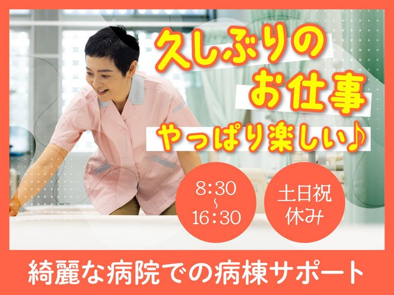 仕事内容 / 「安定志向」の私が選んだ お仕事をご紹介します(´ω`*)♪ \ ▼仕事を選ぶ上での絶対条件▼ ✅駅チカ・家から通いやすい立地 ✅土日祝休み・日勤のみ ✅長く働ける環境・業界 ✅できれば高時給で! …そんな超・良い条件の職場、 あるんです!!!!!!!! <お仕事詳細> ■食事の配膳・下膳、配茶・食事介助 (サイドテーブルやお箸などを並べて、食事ができるように準備) ■清拭やシャワー浴・入浴介助 (必ず看護師さんと一緒で毎回丁寧に指示します) ■各部門へのメッセンジャー業務 (薬・検体・書類や物品を運んだり院内のお買い物など) ■病室、病棟・ナースステーションの環境整備・整理整頓 (ベッド周りや床頭台などのクロス拭きやコロコロ) ■物品整理整頓、簡単な備品作成や器具洗浄 (ポータブルトイレや吸引びんなど) ■シーツ交換(定期交換、汚染時) ベッドメイキング(オペのお迎え用) ■患者さまの移送搬送 (歩き、車椅子、ストレッチャー、ベットなど) <1日の流れ(例)> 全て患者さまリストに基づき行います。 08:30~ 勤務開始! 10時退院の患者様の部屋清掃、 ベットメーキング 10:00~ 新しい患者様をお迎えの手伝い 11:00~ 配膳開始 食事介助や見守り 12:00~ 休憩タイム(60分間) 13:00~ 下膳 14:00~ 患者様を外来の診察・ 検査室へ移送、搬送 15:00~ 薬局へ薬剤の受け取り 15:30~ 入浴介助のサポート ~16:30 残業ナシでお仕事終了♪ ー \働くスタッフさんを紹介!/ ■50代/子育てが落ち着いた主婦さん 元々近所のコンビニでパートしてましたが 子供の大学入学を機に、久しぶりに フルタイムのお仕事に切り替えようと思いまして。 ◎通いやすい立地 ◎長期で安定できる ◎平日日勤のみ この辺を軸にお仕事探してました! そんな都合のいい仕事、 なかなかないだろうなあ~ って思っていましたが、こちらの求人 見つけちゃいました(´艸`*) 病院で働くのは初めてですが けっこう普段の家事仕事と 似た作業が多かったりして。 慣れるとルーティン化できるものもあり 何とかやれていると思います◎ この年でもイチから色々学ばせて もらってるのはありがたいですね。 子供や家計のために貯金もしてますが 自分が自由に使えるお金も増えました! 帰り道にカフェでゆっくりするのが 最近のマイブームです♪