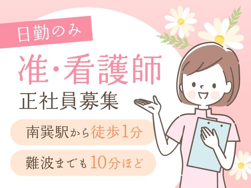 仕事内容 「南巽駅」から徒歩1分! 「難波」までも10分ほどの好立地 *。. 明るく元気なスタッフが多く、 院長も気さくで 患者様からも慕われる存在◎ そんな長く働き続けたくなる クリニックです。 ⭐完全週休2日制 (水・日曜、土曜午後、祝日休み) ⭐日勤のみ!17時定時 ⭐経験が浅い方も歓迎! ⭐ブランクOK ~~~~~~~~~~~~~~~~~~~~ 仕事内容: あなたにお任せするのは 患者様の記録や管理、 診察のサポート、採血などの 一般的な看護師・准看護師業務。 少しでも経験がある方は優遇します! また、午後は往診もあり。 往診は難しい診察などはなく、 看護師だけでできるような検査のみです。 基本的には、先輩スタッフとペアになり 患者様のご自宅へ出向くため、 自動車免許をお持ちの方は 尚歓迎いたします。 もちろん一人で向かうことは 業務に慣れてきてからですし、 ほぼありませんので、ご安心ください。 *。. < 院内の雰囲気 > 地元に根ざしたクリニックとして、 小さなお子さんから年配の方まで 家族ぐるみで来院される患者様も たくさんいらっしゃいます。 スタッフは20代の若手や 家庭と両立して働く30代・40代が多数! 明るく元気な方が多く、 ギスギスした空気は一切なし! いつも和やかな空気が流れています。 なんでも相談しやすい風土なので ブランクがある方も、 安心して復帰することができますよ。