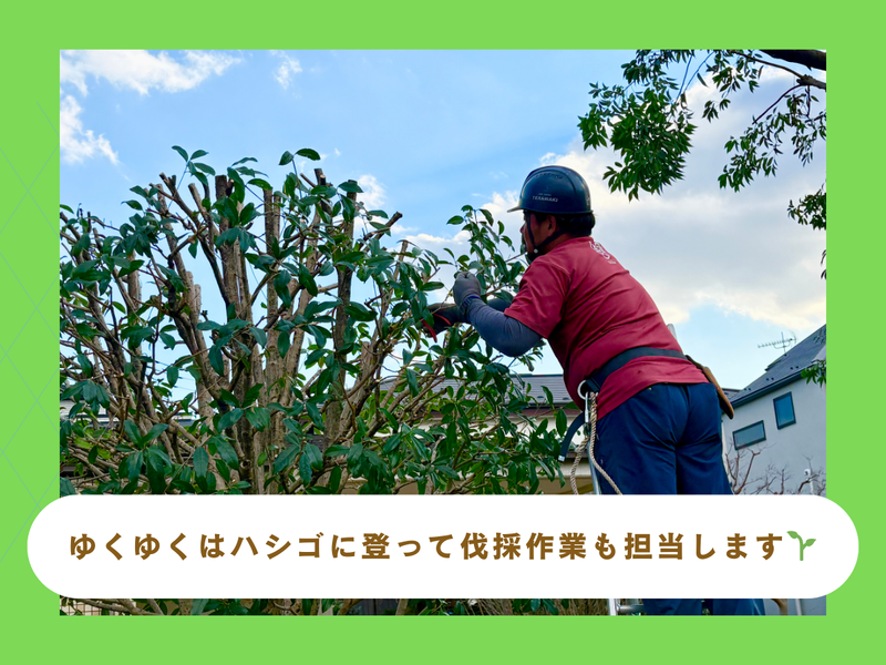 仕事内容 ⋆―― ⋆⋅☆⋅⋆ ―――― ⋆⋅☆⋅⋆ ――⋆ 未経験でも同世代より給与は高め。 性別関係なく活躍できるし、 手に職をつけて働きたい。 だからこそ選んだのは造園業。 ⋆―― ⋆⋅☆⋅⋆ ―――― ⋆⋅☆⋅⋆ ――⋆ "しっかり稼いでしっかり休むを実現!" 現在女性スタッフも大活躍中♥ \ "女性も働きやすいポイント" / ♥意外と力作業が少ない♥ 切った枝を運んだりする際は 少し力が必要な時もありますが… 工夫次第では 最小限の力で運ぶことができるので、 キツイなと思うことも少ないです! 実際に女性スタッフも活躍しており 業界でも女性が増加傾向なので、 働きやすい職種へと成長しています✨ ♥体力よりも繊細さが大切♥ 力勝負や体力勝負というよりも 植物を扱うお仕事なので、 繊細さやこだわりなどが重要なお仕事。 なので性別関係なく、 活躍できるお仕事です! ♥アイドル的存在になれちゃう!笑♥ 業界の女性比率としては20%ほどで、 まだまだ少ない状況ですが… だからこそ女性スタッフが 重宝されています! 植物が好きな方や 何かをつくるのが好きな方には オススメのお仕事です✨ \ ⛅仕事内容⛅ / 造園作業員業務をお願いします。 基本的に現場は従業員全員で行くので、 みんなで分担して作業をしていきます! <具体的には…> ・樹木の剪定や伐採 ・刈ったあとの草木の片づけ ・草刈り作業 ・運搬作業 ※普通自動車免許を持っている方は運転をお願いすることもあります。 など <未経験の方は…> 切った枝の片づけや 安全確認(※)などの作業からスタートします。 枝を集めてトラックに運ぶだけなので、 難しいことはありません! 経験がなくてもすぐ活躍できます✨ ひとりだちまで3年ほどですが あまり焦らずじっくりと、 仕事を覚えていただければと思います! ※安全確認とは※ 梯子に上って作業する方が 安心して作業できるように下で見守る作業です。 <担当エリア> メインは多摩地区の公共施設、公園、学校等などです。 ※一部23区や埼玉(所沢など)もあります。 ※皇居や宮内庁なども担当してます。 \ ⛅仕事のこだわり⛅ / 現場は社長含め全員同じ現場で 作業することを心掛けています。 全員で作業することにより 残業しないで早く作業できるだけでなく、 ✅じっくり新人さんへの指導をしたい ✅じっくり技術の指導や継承をしたい ✅チームワークを高めたい という点を大切にしているため、 当社では全員同じ現場で作業をしています! 新人さんが置いてけぼりになったり スキルアップできず毎回同じ作業をしたり、 なんてこともなく、 新人さんも中堅さんも成長できる環境です✨ \ ⛅一緒に働く先輩たちは…⛅ / 当社はベテランの先輩だけでなく、 入社3年以内の若手の先輩も在籍しています! 年齢も20~50代と幅広く活躍中です✨ 先輩たちは優しくて おっとりしている方々ばかり! 厳しすぎる上下関係などはなく、 のびのびと働けるのが魅力です✨ \ ⛅当社のPOINT⛅ / ✅珍しい現場は冒険みたいで楽しい!笑⭐ ※定期的に皇居や宮内庁など、 珍しい現場に行くことも…! 普段入れない場所に行けるので、 少しワクワクします✊笑 ✅免許や資格は不要 普通自動車免許や仕事に関わる資格は 当社では一切不要です。 ✅資格取得支援制度あり キャリア・スキルアップのための資格取得は 会社全額負担で資格取得が可能です! 技術を直接指導するだけでなく 費用面もサポートができるので、 会社と共に成長できればと思います✨ ✅残業はほぼありません! 当社では働く時間の管理を 特に徹底しており、 ほとんど残業はありません。 遠方の現場の場合にも 17時まで仕事せず早めに切り上げ、 遅くてても18時には 退社できるように調整しています。 "1日が仕事だけで終わるのではなく、 家族や友達や自分の時間を大切にして欲しい!" というのが当社のモットーです! そのため仕事が終わったら、 キックボクシングをしたり友達と遊んだり、 家族と食事をしたり… 社長を含め従業員全員、 アフター5を楽しんでいます✊ ぜひ当社に入社されたら、 アフター5を楽しんでください✨ ✅賞与は年3回支給 ✅退職金制度で安心感◎ ✅交通費規定内支給 ✅家族手当支給 ✅その他手当支給 ✅直行直帰も相談可能 ✅早く終わった場合も給与保証 ✅実働は7時間程度! ✅車・バイク・自転車通勤可能!