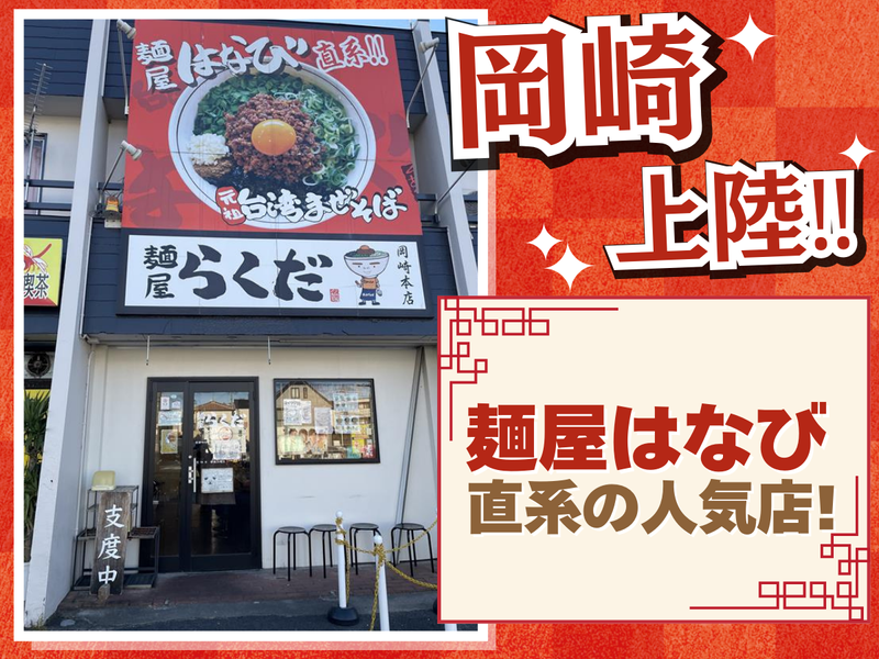 仕事内容 ⭐主婦・学生・フリーターさん多数活躍中 ━━━━━━━━━━━━━━━━━━ ✨週1日~OK! 本業や大学・家庭と両立できる♪ ✨短時間などシフトの相談もお気軽に! ✨髪型・ネイル・ピアスOK! ✨ラーメン店ならではの 美味しいまかないあり♪ ⭐お仕事内容 ━━━━━━━━━ ラーメン店でのホール・キッチン業務を お任せします! ◎具体的には… ・食券の回収 ・ラーメンの配膳 ・簡単な盛り付け ・麺上げ作業 最初はホール業務からスタートします。 仕事に慣れてきたら、ゆくゆくは キッチン業務もお願いします♪ 食券機があるため、注文ミスや お客様対応の負担が少なく、 落ち着いて業務を行えます◎ ⭐当店の雰囲気! ━━━━━━━━━ ランチ帯は主婦さんが、 ディナー帯は学生さんが活躍中! シフトの融通がきくので Wワーク希望のフリーターさんも大歓迎! ⭐スタッフの声 ━━━━━━━━━ 最初は覚えることもありますが、 食券制で簡単なことも多いので すぐに慣れました! 分からないことも聞きやすい環境です。 忙しい時間帯もありますが、 「おいしかったよ」「ごちそうさま」と お客様が帰り際に声をかけてくれるので やりがいを感じます◎ あと… まかないがめっちゃ美味しいです♪ ⭐店舗情報 ━━━━━━ 【麺屋らくだ 岡崎本店】 まぜそばで有名な”麵屋はなび”直系の ラーメン店! ここでしか食べられない ”はなび直伝の醤油ラーメン”や 背あぶらめしが人気のお店です◎ 愛知県岡崎市日名本町1−12 アクセス:北岡崎から車で4分