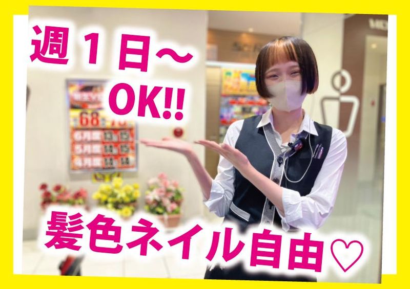 仕事内容 ============= 仕事内容 ============= 困っているお客様へのサポート 遊技台や備品類の清掃 カウンターでの景品交換 開店前のオープン準備、閉店後の締め作業 景品補充などなど。 \未経験さん大歓迎♪/ 学生・フリーター・主婦さん等 20・30代が活躍中の当社! 女性スタッフが多い店舗 です! 〇髪色・ネイル自由 金髪、グラデーションカラー等 清潔感があれば何色でもOK! 自分の好きな髪色ネイルで! 〇選べる制服 キュロットで可愛らしく♡ パンツでスタイリッシュに♪ 自分らしいスタイルで働けます! 〇履歴書不要 面接時の履歴書は不要! お気軽に面接へお越しください♪ 〇同世代が多い 休憩時間や仕事終わりに 共通の話題で盛り上がれる! 毎日がより楽しい♪ 〇2週間毎のシフト制! 週1日~、1日5hシフトからOK 「学校終わりのこの時間から」 など、時間は応相談! 曜日固定もOK! 〇接客スキル習得 当店で接客スキルを身に付け 就職活動に活かせた 卒業生多数! 〇サポート体制バッチリ! 遊技機のトラブル対応が あっても安心できるよう 先輩がいつでも 駆けつけます!! 「パチンコ店に入ったこともない」 というスタッフも多く在籍しています! 未経験の方も多数活躍していますので ご安心くださいね♪