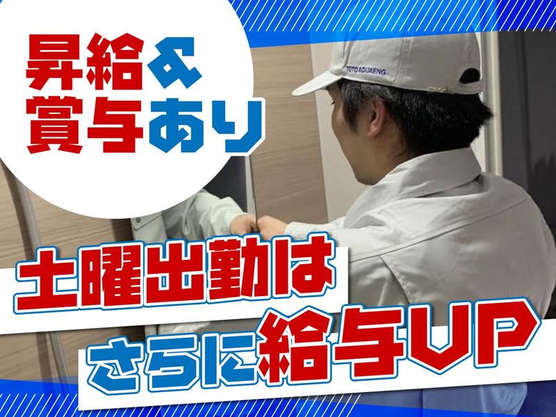 仕事内容 \ユニットバス設備工事のクリーン革命/ \長く働きたくなる「ホワイト企業宣言」/ \ちゃんと休んで、ちゃんとお給料/ \他にはちょっとない労働と給与環境/ ____________________ ★有休は申請すれば100%取得可能! ★残業代は1分単位で全額支給! ★労務管理が透明化! ★正社員なのに選べる勤務スタイル! →スタイルによっては週休3日も! ★正社員なのにWワークOK!! ★早出・残業代も時間通りに支給! 例)準備の為に5時出社を指示された場合 定時は8時出勤ですが、5時に事務所に出社した場合、 3時間分残業代支給。 片付けを指示され、残業する場合は 現場を17時30分終了し、片づけて 事務所に戻ってくるのが20時なら 17時~20時までの3時間分残業代支給。 通常は直行・直帰があるので、残業などはなく、 時間通りの基本勤務です。 ___________________ ✅経験者優遇!各種手当で月収30万円超◎ ✅ライフスタイルに合わせて働き方選べる! ✅バランス重視派は完全週休2日制も選べる ✅明確な評価制度でキャリアアップ応援 【 業務拡大のため即戦力募集! 】 ユニットバスやキッチン、トイレなど住宅設備の設置工事をお任せ! 指定工事店の基準をクリアし、『TOTO株式会社』のパートナー企業として継続したご依頼をいただいています。 ユニットバスは既にパッケージとしてほぼ完成してる商品が多く、プラモデルのような組み立て作業で設置が可能! 切断作業や火を扱うこともないため、経験者であればサクサク組み立てられます。 ■設置先 マンション、ホテル、病院など集合住宅 高級ホテル・マンションでの工事もあり ■勤務先/東京メイン ※現場への直行直帰OK ※他県、離島への遠方出張あり (出張手当支給!) ……………………………………… \3パターンの働き方から選べる!/  ̄ ̄ ̄ ̄ ̄ ̄ ̄ ̄ ̄ ̄ ̄ ̄ ̄ ̄ ̄ ̄ ̄ ⏩「高収入を目指したい!」という方は… 案件によって土曜出勤あり!ガッツリ稼げる 【ファーストコース】がオススメ◎ 土曜出勤は残業扱いとして給与計算をするため、収入がグンとアップ! (※月曜~金曜で終日実働40hを超えた場合) ⏩「お休みを充実させたい!」という方は… 完全週休2日制で働ける 【セカンドコース】がオススメ◎ お休みはしっかり確保しつつ、 月給25万円~35万円と安定した収入も得られますよ。 ⏩「合間で副業したい!」という方は… 週休3日制で自由なスタイルを目指せる 【サードコース】がオススメ◎ 豊富なお休みで二足の草鞋を履くことも可能です。 切り替えが年1回(3月)あるため、ライフステージに合わせて働き方の変更もできます◎ \昇級試験で明確な評価制度を実施/  ̄ ̄ ̄ ̄ ̄ ̄ ̄ ̄ ̄ ̄ ̄ ̄ ̄ ̄ ̄ ̄ ̄ 頑張っているスタッフが正当に評価されるよう、昇級試験を導入! 初級(道具の名前を覚えている)、中級(基本の施工手順を覚えている)など、レベルに合わせた試験があります。 試験に合格すれば給与UP! 努力が収入に直結するシンプルな評価スタイルだからこそ、社員のモチベーションに繋がっています! 「実力・スキルが評価されない…」 と現職で悩んだことがある方は当社でもう一度、キャリアアップにチャレンジしてみませんか?