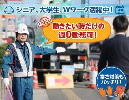 仕事内容 ▼▽▼ この求人の魅力をご紹介 ▼▽▼ ◎無資格未経験OK!研修費用は会社負担! ◎働きたい時だけ週0~からOK(基本平日のみ) ◎給与の週払いOK!扶養範囲内OK! ◎1勤務8時間のため1日でしっかり稼げる! ◎学業や子育てとの両立がしやすい! <寒い冬でも安心!防寒対策もバッチリ!> 寒い季節は各営業所にてカイロや防寒着を支給! 夏と同様に冬もスタッフの体調管理や休憩に 特に気を配っています◎ - お電話での応募、問い合わせ:080-2944-9404 応募前のご相談も大歓迎!お気軽にご連絡ください。 - ?? 先輩スタッフインタビュー?? 「無理なく、長く続けられる場所を探していました」 Aさん(60代・男性)/前職:清掃アルバイト 入社のきっかけ 前職は清掃の仕事をしていましたが、 体力的に少しきついと感じるようになり、 もう少し自分のペースで働ける場所を探していました。 ここは「シニア活躍中」という言葉通り、同年代の方も多く、 未経験の私でも温かく迎え入れてくれました。 ここがおすすめ! 一番の魅力は、やはりシフトの融通が利くことです。 「今週は通院があるから休みたい」「孫が来るから週0にしたい」 といった希望も快く受け入れてもらえます。 応募を迷っている方へ 特別な資格も経験もいりません。 適度に体を動かしながら、無理のない範囲で社会と繋がれる。 私にとってここは、最高の「居場所」になっています。 <具体的なお仕事について> 朝から夕方までの勤務で、 道路や建設現場を通る車や工事車両が スムーズに動けるようサポートしたり、 歩行者の皆様を安全にご案内したりするお仕事です。 初めての方、研修明けの方は先輩スタッフが、 一緒に入り教えていきますのでご安心ください! <現場デビュー前の研修について> ※もちろん研修手当も支給されます。 警備デビューの第一歩は、 新任研修を受講して基礎を学びます。 ここでは警備員に必要な法律や ○実際どんな仕事をするのか ○どんな危険があるのか ○どうすればよいのか など学びます。 研修後は、いざ現場へと言ってもまだ見習いです。 実際の現場ではどのように行えば良いのか 先輩方がマンツーマンで指導します。 ▼▽▼こんな方にピッタリ▼▽▼ ◎就活終わりや学業に余裕のある大学生の方 ◎イベントスタッフ、接客サービス、飲食などと ダブルワークを検討中の方 ◎軽作業や倉庫作業など立ち仕事の経験者の方 ◎梱包、検品、ピッキングなど製造、工場作業に飽きた方 ◎シフト自由や扶養内パートをお探しの方 ◎中高年、シニアの方も活躍中 ◎副業をお探しのフリーターの方 ◎バイトデビュー、ブランクあり歓迎 ◎不定期の仕事のある夢を追いかけている方 (お笑い芸人やミュージシャンなど)