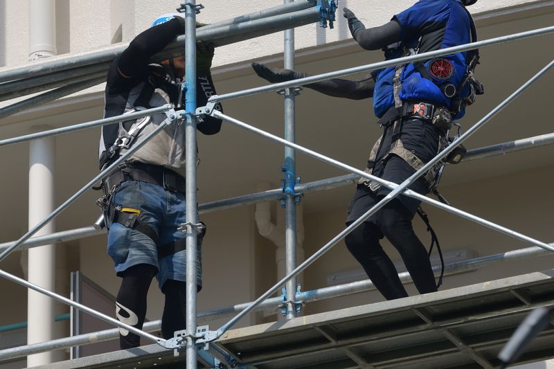 建築工事などの足場工事をする現場作業スタッフ