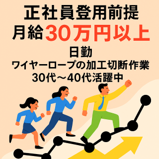 仕事内容 ✅土日祝休み ✅8:30~17:00のウレシイ日勤 ✅未経験歓迎!資格保有者も優遇 ✅車・バイク・自転車通勤可! 阪神電車「御影」駅から徒歩15分 ――――――――――――――――― 【お仕事内容】 <ワイヤーロープの加工・出荷作業> 製品化されたワイヤーロープを注文に応じて、 ∟各製品の切断 ∟定着具を装備 ∟検品・出荷作業 *玉掛け・クレーン資格者優遇 *未経験者もOK ――――――――――――――――― <<お電話でのご応募も大歓迎!>> お気軽にお問い合わせください。 「話だけ聞いてみたい」という方も お電話お待ちしています! TEL:078-939-9077 ――――――――――――――――― 求人管理No./FA000050 【F.Assistについて】 食品メーカーである藤本食品株式会社のグループ企業として、 製造業を中心に幅広い職種の人材派遣を行っています。 幅広い職種に対応しており、未経験者歓迎の求人や高時給の案件が多く、 安定した働き方を求める方やスキルアップを目指す方におすすめです◎ 【働くメリット】 *未経験者歓迎 未経験からスタートしているスタッフが多く、 担当者による丁寧なフォロー体制があります。 *働き方 長期・日勤・交替制など、 ご希望に合わせたお仕事探しをサポートできます。 *高時給・高収入 安定して稼げる案件が多くあります。 *面接の柔軟性 平日夕方以降や土日もWEB面接に対応しております。 *地域密着 兵庫県内の企業と多数連携しており、 希望のエリアでの就業が見つけやすい。