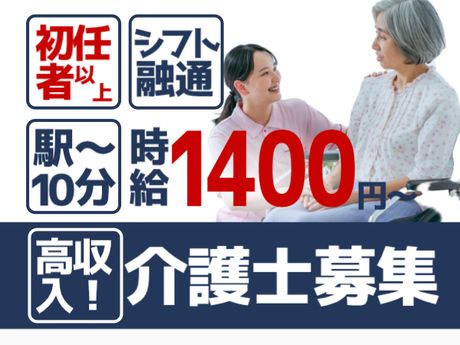仕事内容 ■サービス付き高齢者向け住宅における介護業務全般 ※ご入居様により充実した生活を送っていただくために、日常生活のサポート全般をお願いします ■■身体介助■■ ┗起床・就寝介助 ┗食事の準備・片付け ┗衣類の着脱のお手伝い ■■生活介助■■ ┗買い物や散歩の付き添い ┗お部屋の掃除・シーツ交換 ┗レクリエーションの企画・実施 ┗見守り ■■他、業務■■ ┗他職種との連携 ┗介護記録作成 など <お仕事の1日のスケジュール例> 07:00~ 起床介助:更衣、トイレ誘導、排泄介助 07:30~ 朝食:朝食の提供、食事介助、片付け 09:00~ 施設内清掃 10:30~ 昼食準備 12:00~ 昼食:昼食の提供、食事介助、片付け 14:00~ レクリエーション準備・運営 15:00~ おやつ配膳 16:00~ 入浴:準備、介助介助、声掛け 18:00~ 夕食:夕食の提供、食事介助、片付け ~21:00 <派遣先> 定員45名サービス付き高齢者向け住宅 <通勤方法・その他補足> ※バイク、自転車通勤可能 <新型コロナウイルス感染防止対策実施> マスク着用での勤務、アルコール消毒液完備などの感染対策をし、利用者様もスタッフも守れるよう体制を整えています。 <受動喫煙対策> あり(屋内禁煙) ここがポイント ■時給1400~1500円 ■月収24万円以上可能!(介護福祉士の場合) ■週3日勤務よりご相談ください ■「早番のみ」「遅番のみ」など働き方ご相談ください ■定員45名サービス付き高齢者向け住宅 ■閑静な住宅地の中にあります ■最寄駅より徒歩10分! ■交通費全額支給