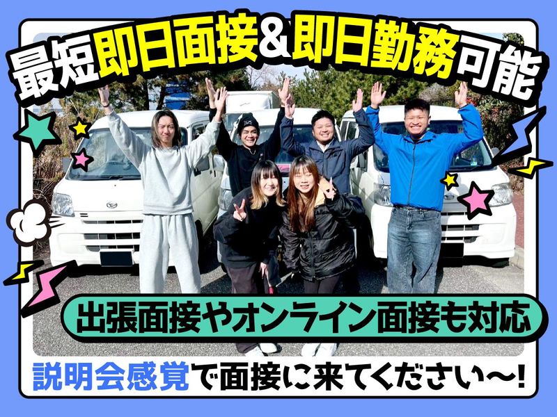 求めている人材 ★要普通自動車運転免許(AT限定可) ・学歴不問 ・性別不問 ・異業種や異職種からの転職歓迎 ・ブランクOK ・フリーター歓迎 ・20代・30代・40代staff中心に活躍中! 前職等の経歴や学歴で判断はしません!!!!! 人柄重視の採用です。 堅苦しい志望動機等も不要です。 -------------------- ▼先輩スタッフの志望動機は?▼ ・子どもが生まれるからがっつり稼ぎたくて ・長距離配送が体力的にしんどい ・人間関係に疲れて ・夜勤なしで毎日家に帰りたい ・自分のペースで気楽に働きたい など