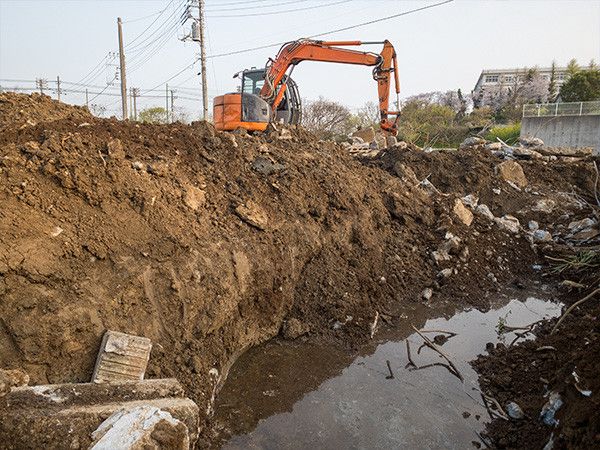 地盤強化の現場作業員