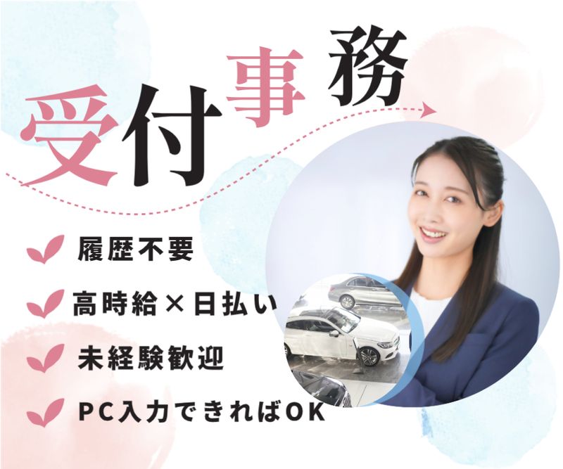 仕事内容 【お仕事point!!!!】 ・年末年始、GW、夏季休暇があるのでレジャーが好きな方にもおすすめ ・車通勤OK!満員電車とは無縁! 煩わしい人混みや密を完全に回避し、快適なプライベート空間で通勤できます。 ・受付は会社の顔として働くことができ、普段出会えない層の方々やスタッフから直接感謝していただけるお仕事です ・きれいな職場で長くご就業いただけます!休憩室もあるのでお昼休憩はゆっくりリフレッシュできます!メリハリをつけてお仕事できる環境です♪ ・座り仕事の事務作業もありますが、基本立ち仕事になるのでちょっとした運動にもなりますよ! - 慣れるまでは、接客中心の業務をしていただきます。 慣れてきたら、接客7割:事務3割で臨機応変に対応していただきます。 【仕事内容】 ~受付~ ・接客 ※ご来店されたお客様を笑顔でお迎えし、用件をお伺いして担当者へ引き継ぎます。 ・電話対応 ・ショールームの装飾、整頓など ~営業サポート~ ・事務作業(簡単なパソコン入力、書類作成) ・契約受注後の書類仕分け ・処理、データ入力 ・出納業務 【研修】 ・OJT(業務をしながら丁寧に教えて下さります) 【就業先・主力商品】 ・自動車販売 【服装・貸与物】 ・服装自由(オフィスカジュアル) ・シンプルネイルOK ・髪型・髪色自由(ヘアカラー協会7番より暗い色) 【職場環境】 ・室内禁煙 ・休憩室_あり ・喫煙室_あり ・電子レンジ ・冷蔵庫 ・給湯器 【部署】 ・男女比(男性1:女性9) ・平均年齢:30歳 ・20代、30代、40代、50代活躍中! 【その他】 ・直接雇用の可能性あり (正社員登用の可能性あり) (HR-009)