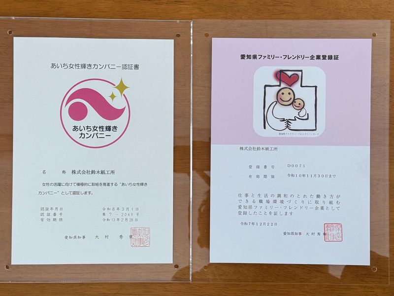 勤務時間詳細 9:00~15:00 1日5時間程度を目安に、9:00~15:00前後で働くスタッフが多いですが勤務時間・曜日は個別に相談のうえ決定しています。(フルタイムも可) 週2・3日から勤務OKでご家庭の状況に合わせて、無理なく長く続けられる働き方を一緒に相談しながら決めています。 そのうえで、長く関わりながら仕事を覚え、スキルを積み重ねていく意欲のある方に来ていただけるとうれしいです。 【働き方について】 愛知県ファミリー・フレンドリー企業、および、あいち女性輝きカンパニー認証企業です。 お子さんの送り迎えや学校行事に合わせた調整がしやすく、急なお休みにもほぼ100%対応できる体制です。 実際に、子育て中のスタッフも必要なときには休みを取りながら勤務しています。 将来的に「もう少し働きたい」「勤務時間を増やしたい」というご希望にも対応可能です。