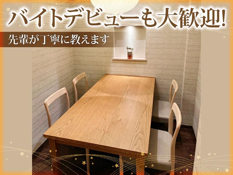 仕事内容 ★スタッフ退職に伴いNEW STAFF募集★ ―――――――――――――――――――― ✅バイトデビューOK!丁寧に教えます◎ ✅週2日~◎17時半・18時~等も可能☆ テストや実習等でのシフト融通利きます ✅堅苦しさ一切なし!みんなでまかないや お菓子を食べたりと温かいお店です♪ ―――――――――――――――――――― 【仕事内容】 <ホール> オーダーとり、配膳、ドリンク作り など 料理の名前を覚えることからスタート! <キッチン補助> 盛り付けや具材カット など 調理未経験の方でもできる簡単なことをお任せします! 調理系の専門学生も歓迎! ホールもキッチン補助も未経験OK! 今いるスタッフも未経験から始めたスタッフばかり。 飲食店で働いてみたい方大歓迎です♪ 【勤務体制】 平日土日どちらも基本4名体制 現在アルバイトスタッフ:4名 ホール:2名/キッチン:2名 ⇒一緒にシフトに入るスタッフがサポートするので安心! 【嬉しい♪まかない付き】 和食から洋食・中華など、 絶品まかない付き! 食べることが好きな方歓迎☆ 【お店の雰囲気】 懐石料理と聞くとかっちりしたイメージが あると思いますが、店長は優しく、 常連のお客様も多いので、 あったか~い雰囲気です。 カウンター席中心で席数も多くないので 落ち着いて接客・対応できますよ◎ スタッフ仲も良く、まかないを食べながら いつもワイワイにぎわっています♪ シフトも柔軟に対応しますので 何でも気軽にご相談ください◎
