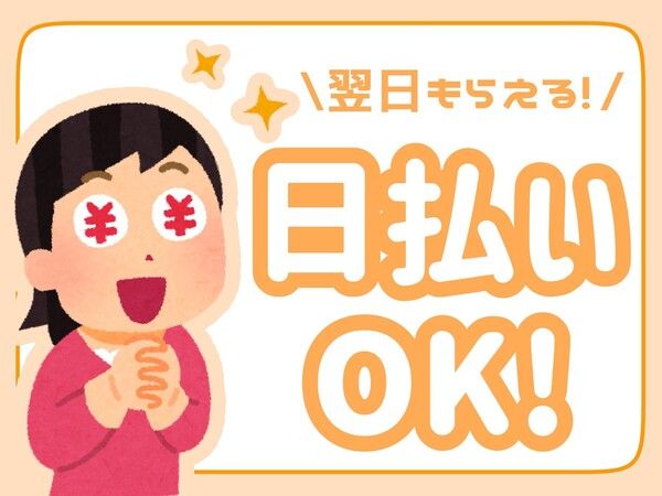 【保険制度】 雇用保険、労災保険、健康保険、厚生年金 待遇 ・交通費規定支給 ・昇給あり ・社会保険完備 ・週払いOK(規定あり) ・ロッカー完備 ・服装自由 ※オフィスカジュアルなどの縛りも特にありません! ・ネイル、ピアス、ひげ、髪型、髪色自由 ※金髪OK、流行りのネイルも楽しめちゃいます!