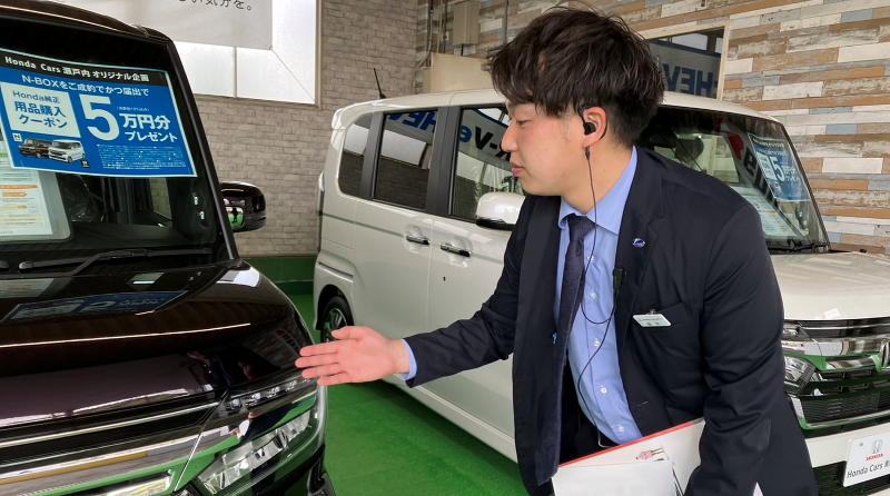 アピールポイント: 新車/中古車のお見積りから ご購入手続き、メンテナンスのご案内など ホンダの正規ディーラーを 県内4店舗展開中の当社。 あなたには営業として、 お客さまのご案内や 継続的なフォローをお任せします。 「車のことは○○さんに相談しよう!」 と思っていただける信頼関係が、 やがて成果につながっていきます! 入社後の流れ 社会人経験浅めの方は 1~2カ月の本社研修から始めます。 研修後、または一定の社会人経験がある方は、 配属先の店舗でOJTをスタートします。 1台目のご成約をいただけるまでは、 入社後2カ月~半年ほどを目安に考えています。 お客さまとの相性やタイミングもありますので、 焦らず根気よく コミュニケーションを取っていきましょう。 研修について ホンダの研修カリキュラムを通じ、 販売に必要な基礎知識や、 商品理解を深められます。 外部講師による接遇研修もあり、 自信をもってお客さまと向き合えるように! 嬉しいポイント タブレットの活用により、 車の特長や他社との比較資料を すぐお客さまにお見せできます。 組織構成 ・県内4店舗/各4~5名の営業社員が在籍 ・男女比/4:1 ・年齢構成20代~50代まで活躍中 ・定着率97%(直近1年間) 業界未経験の方、 整備士から営業ヘキャリアチェンジした方など、 多彩なバックボーンの メンバーが集まっています。 これまでの スキル/知識/学歴などは関係ありません!