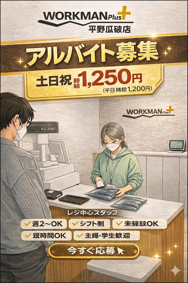 仕事内容 昼~夕方スタッフ|レジ中心で未経験でも安心|週2日~OK|主婦(夫)・学生スタッフ活躍中! 今年の3月でオープン3年目を迎えました!!新しくて綺麗な店舗です。 こちらは、主婦(夫)の方や学生さんが働きやすい「お昼」と「夕方~」の時間帯の募集です。 【募集職種】 店舗スタッフ(レジ対応・売場管理メイン) 【具体的な仕事内容】 レジ対応、お客様対応をメインに、売場整理、商品の品出し、清掃などをお願いします。 仕事内容イメージ ・レジ、接客、お客様対応(約50%) ・商品の品出し、売場整理、売場づくり、在庫整理(約40%) ・店内清掃、伝票管理、その他(約10%) レジの決済方法はクレジットカードと現金のみなので、操作はとてもシンプル! 未経験の方でもすぐに覚えられます。ノルマなども一切ありません。 ■ 応募条件 ・土日いずれか勤務できる方 ・長期で勤務できる方 ※土日両日勤務できる方は歓迎します。 ※繁忙期・閑散期により勤務日数が変動する場合があります。詳細は面接前のヒアリング時にもご説明します。 【こんな方に向いています】 ・時間や約束をきちんと守れる方 ・コツコツ丁寧に仕事に取り組める方 ・整理整頓や売場づくりを大切にできる方 ・お客様やスタッフに親切に接することができる方 ・周りと声をかけ合いながら働ける方 ・扶養内で働きたい方も歓迎します 経験よりも人柄を重視して採用しています。 経験者はもちろん、未経験の方、ブランクのある方、学生の方も歓迎します。 ■ 人間関係や働き方のストレスをできるだけ減らしています アルバイトの方に安心して長く働いてもらえる環境を大切にしています。 ■ 落ち着いた雰囲気の職場です 当店では人柄を大切にした採用を行っているため、スタッフ同士も和やかで、落ち着いて働ける環境です。 店内も落ち着いた雰囲気で、安心して働ける職場です。 困った時は相談しやすく、一方でプライベートに踏み込みすぎない、ちょうどよい距離感のある職場です。 人間関係のストレスが少ない環境で、無理なく長く続けやすい職場を目指しています。 ■ 勤務時間外の連絡はありません 当店では、スタッフ全員が参加するような 業務用LINEグループは設けていません。 アルバイトでよくある、 「休みの日に仕事の連絡が来る」 「LINEを開くか迷う」 「見たら返信した方がいいのかなと気を使う」 「休む連絡を入れる時に少し気が重い」 「毎回、休む理由を細かく伝えるのが負担になる」 「グループLINEが動いていると休日でも仕事を思い出してしまう」 ――そういったストレスができるだけ無いようにしています。 お休みの日は、しっかり休んで、 プライベートの時間を大切にできる環境です。 シフト提出や確認は、 専用アプリ(エアシフト・シフトボード)を使用しています。 スマホから簡単に申請・確認ができるため、 連絡のやり取りに気を使いすぎる必要もありません。 また、業務の引き継ぎや確認事項なども 基本的には退勤前に完結できるようにしているため、 勤務時間外に仕事の連絡が発生しにくい運用にしています。 ■ 「代わり探し」のルールはありません 基本的には、決まったシフトに沿って勤務をお願いしています。 体調管理を含め、できるだけ安定して勤務いただける方を歓迎しています。 そのうえで、シフト確定後に やむを得ない事情でお休みが必要になった場合でも、 ご自身で代わりのスタッフを探していただく必要はありません。 急な体調不良など、困った時は遠慮なくご相談ください。 シフトの調整は店長側で行いますので、 お休みの連絡の際も、必要以上に気を使わなくて大丈夫です。 ■ 困った時はすぐにフォローします お客様対応やトラブルが発生した場合でも、スタッフが一人で抱え込む必要はありません。 困った時は、すぐに店長や先輩スタッフを頼ってください。責任を持って対応します。 未経験の方でも安心して働ける環境です。
