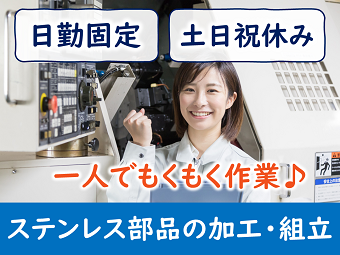 仕事内容 ★単独作業希望の方必見★【軽量部品の加工・組立】国道50号近くでアクセス抜群!土日祝休みで週末は完全オフ♪20代~40代までの男女活躍中! <仕事内容> 《医療機器や精密機器の軽量ステンレス部品の加工と組み立てを行います》 ■部品の加工 機械に材料をセット、機械のボタンを押すだけで加工が完了します◎ ■部品の組立 加工された部品に、アルミシートを貼り付ける作業です! ▼冷暖房完備の空間で快適にお仕事ができます♪ ▼軽作業かつ個人作業なのでコツコツもくもくと作業ができます◎ 立ち作業でのお仕事です。 個人作業となります。 ≪職場環境≫ 男性が多い職場です。 冷暖房完備です。 ロッカー有り|休憩室完備 アピールポイント <仕事内容> 《医療機器や精密機器の軽量ステンレス部品の加工と組み立てを行います》 ■部品の加工 機械に材料をセット、機械のボタンを押すだけで加工が完了します◎ ■部品の組立 加工された部品に、アルミシートを貼り付ける作業です! ▼冷暖房完備の空間で快適にお仕事ができます♪ ▼軽作業かつ個人作業なのでコツコツもくもくと作業ができます◎ 立ち作業でのお仕事です。 個人作業となります。 ≪職場環境≫ 男性が多い職場です。 冷暖房完備です。 ロッカー有り|休憩室完備 \充実した福利厚生/ ◎社会保険・雇用保険完備 ◎有給休暇有(6ヶ月経過後、10日付与)※規定あり ◎残業手当 ◎交通費支給(規定内) ◎確定拠出年金制度 ◎週払い制度(週3回対応) ◎お友達推薦制度あり(規定有り) ※1名につき3万円~10万円臨時給与として支給 ◎職場見学あり ◎車(マイカー)・バイク通勤可(無料駐車場あり) ◎作業服一式貸与 ◎冷暖房完備 ◎食事持参可 ◎食事スペース有り ◎ロッカー・休憩室利用可 ◎福利厚生プログラム (宿泊、グルメ、ショッピングなど大幅割引が受けられる10万アイテムのメニューがあります。)