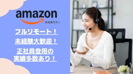 仕事内容 アマゾン公式の完全在宅求人!3月6日入社! \期間限定掲載中/ Amazon直雇用求人!  ̄ ̄V ̄ ̄ ̄ ̄ ̄ ̄ ̄ 派遣やBPO(業務委託)ではなく、 Amazon直雇用・Amazon社員の求人です。 Amazonのメンバーとしてお客様を支える、 やりがいの大きいお仕事です。 Amazon商品を割引価格で購入できる 嬉しい社員割引制度もあります! その他にも日々をワクワクさせる "Amazonならでは"の文化・風土の中で 働いていただけます! 正社員登用実績多数! 最短6ヶ月でAmazon正社員に。  ̄ ̄V ̄ ̄ ̄ ̄ ̄ ̄ ̄ ̄ ̄ ̄ ̄ 客観的かつ明確な評価基準で、 日々の頑張りをしっかり評価します。 最短6ヶ月で正社員登用の評価対象に! 今までのご経験に関わらず、 「大手企業でのキャリアに挑戦したい」 「安定基盤で長く安心して働きたい」 そんな想いがある方にピッタリです! ┏━━━━━━━┓ ◆ お仕事内容 ◆ ┗━━━━━━━┛ Amazonをご利用のお客様からの お問い合わせに電話やチャット、 メールで対応します。 <お問合せ例> ・購入や返品、支払いに関するお困りごと ・お客様のご登録情報 など ・購入前のサービスに関するご相談 など 状況を正確にヒアリングし、解決に導く コミュニケーションが求められます。 約1ヶ月の丁寧な研修制度  ̄ ̄V ̄ ̄ ̄ ̄ ̄ ̄ ̄ ̄ ̄ 対応の基礎から専用ツールの使い方まで、 座学はもちろんロープレを交えながら じっくり学べる環境をご用意しています! 実務スタート後も、専任トレーナーや メンターによるOJTを通して丁寧に サポートいたしますのでご安心ください。 困った時に「助けて」と言える文化と、 あなたを一人にしないサポート体制を 完備しています! ┏━━━━━┓ ◆ 働き方 ◆ ┗━━━━━┛ \新しい働き方/ 完全在宅×スプリット勤務!  ̄ ̄V ̄ ̄ ̄ ̄ ̄ ̄ ̄ ̄ ̄ ̄ スプリット勤務とは、1日の勤務時間を 一度中断し、2回に分けて働くスタイルです。 例えば、午前4時間+午後4時間など、 間に長い休憩を挟むのが大きな特徴! 銀行や役所での用事、通院、 子供のお迎えや夕飯の支度など、 中抜け4時間の使い方はさまざま。 家事や育児との両立もしやすく、 メリハリをつけて働きたい方に最適です。