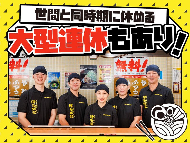仕事内容 【POINT】 ✅飲食未経験でも月給32万円以上◎ ✅残業ほぼなし&大型連休あり♪ ✅頑張り次第でキャリアアップ可能! ✅20代~50代まで幅広い年代が活躍中! <<まずはお気軽にご連絡ください!>> 080-8705-6073(担当:赤池)まで ■――――――――――――――――――――――――――――― 働いているスタッフやリアルな職場を知りたい方はこちら!! ▶https://menya.ne.jp/ ”株式会社MENYA” で検索!! ――――――――――――――――――――――――――――――■ 【仕事内容】 都内中心に複数展開する『とんこつラーメン 博多風龍』の店舗スタッフとして、 接客・調理及び店長や副店長のサポートをお任せします。 ~具体的には~ *お客様のご案内・接客・提供 *ラーメンの仕込み、調理 ~店舗運営サポート~ *スタッフの教育・育成 *売上管理、シフト作成 *その他店舗運営全般 他 未経験から活躍できる理由♪ ╰━━━━━━━v━━━━━━━╯ 明るく元気な対応ができれば全くの未経験でも大丈夫です!いわゆる「見て覚えろ」なんてことはなく、 明確な指針のもと成長していける環境です。業務効率化にも注力しており、 券売機やカウンター中心の作りでお客様対応だけに追われない体制を整えています! 回■回■回■回■回■回■回■ ⚡『博多風龍』で働く魅力⚡ 回■回■回■回■回■回■回■ ⏩未経験でも高収入を実現! L飲食店未経験の方でも、月給32万4207円からのスタート! 昇給あり◎業績などでの給与ダウンはありません! ⏩年3回大型連休あり! L世間と同じ期間に休めるため、ご家族やご友人との予定も合わせやすいです。 もちろん通常時も有給休暇を使って連休取得ができます! ⏩意欲次第でキャリアアップ! L入社時(月給32万円~)→副店長(月給38万円~)→店長(月給42万円~)→マネージャー(月給46万円~)→統括(月給51万円~) と段階的なキャリアパスをご用意。 中には入社~3ヶ月で店長になったスタッフもいます!あなたの頑張りがそのまま評価に繋がる環境です。 ⏩髪型・髪色・ネイル・ピアス自由! Lあなたの個性を尊重します!髪型、髪色、ネイル、ピアス、全て自由! あなたらしいスタイルで、のびのびと仕事に取り組めます♪ 秋葉原、渋谷、新橋、上野、池袋、新宿、高田馬場、阿佐ヶ谷、大宮と都内近郊に10店舗を展開中! ※勤務地は希望に合わせて応相談 【スタッフインタビュー】2024年入社 Kさん 「博多風龍で働く前はアパレルや営業を経験しました。一人で働くことが多かったので、 『もっと大勢でワイワイ仕事がしたい!』と思って博多風龍に。お客様として来た時に、 お店の活気がすごくて『ここで働いたら楽しそう!』って思ったのがきっかけです! 博多風龍の働きやすいポイントはここ◎ ✅残業ほぼなし!仕事終わりの予定も立てやすい! ✅食券制&シンプルな作業で、未経験でもスグ慣れる! ✅頑張り次第でしっかり稼げる給与体系が魅力! 仕事のやりがいは、常連のお客様が顔を覚えてくれて『美味しかったよ』と声をかけてくれる時。 外国人のお客様と身振り手振りでコミュニケーションを取り、『ありがとう』と言ってもらえた時もすごく嬉しいですね。 ラーメン屋が初めての方でも本当に働きやすい環境です!ラーメン作りはシンプルで覚えやすいし、 食券制だから難しい注文取りもありません。 何より、やる気さえあれば誰でも歓迎してくれる雰囲気があります。 僕自身、一度辞めてまた戻ってきたくらいですから(笑)。 給料も良くて、基本的に定時で上がれるので、プライベートも充実させやすいですよ。 ぜひ一緒に、活気のあるお店で楽しく働きましょう!」