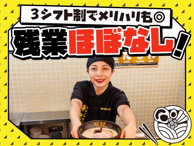 求めている人材 <<飲食未経験の方、大歓迎! >> 経験・学歴・年齢・正社員経験など全て不問! ★基本的には当社理念の「誠実」「笑顔」「元気」に共感できればOK! ★20~50代の男女スタッフ活躍中♪ L40代~50代ミドル層からの未経験スタートも多数! 【こういった方からの応募も歓迎!】 ◎飲食業界でのキャリアアップを目指したい方 ◎商品・店舗運営に興味がある方 ◎ワンマン社長・店長のお店は合わない方 ◎感覚で適当に仕事をするのが苦手な方 ◎おいしいまかないを食べたい方 ◎ラーメンが大好きな方!!