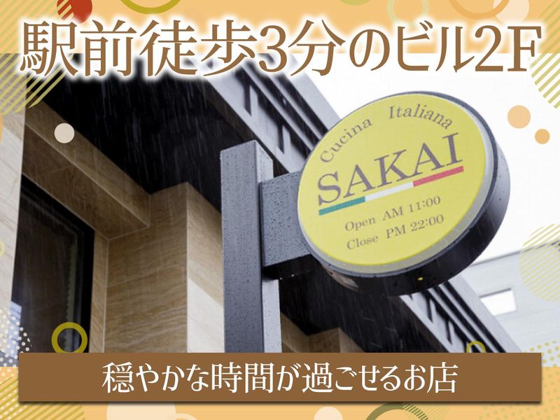 職場環境 2023年4月、JR甲子園口駅近くに オープンしたイタリア料理店。 席数はカウンターとテーブルの計22席の 落ち着いて働けるコンパクトな店舗です。 現在は20代・30代・40代のスタッフが 中心に仲良く勤務中です! お店の雰囲気はこちらでもご覧ください◎ ≪HP≫ https://italianasakai-415.com/ ≪Instagram≫ https://www.instagram.com/cucinaitaliana_sakai/
