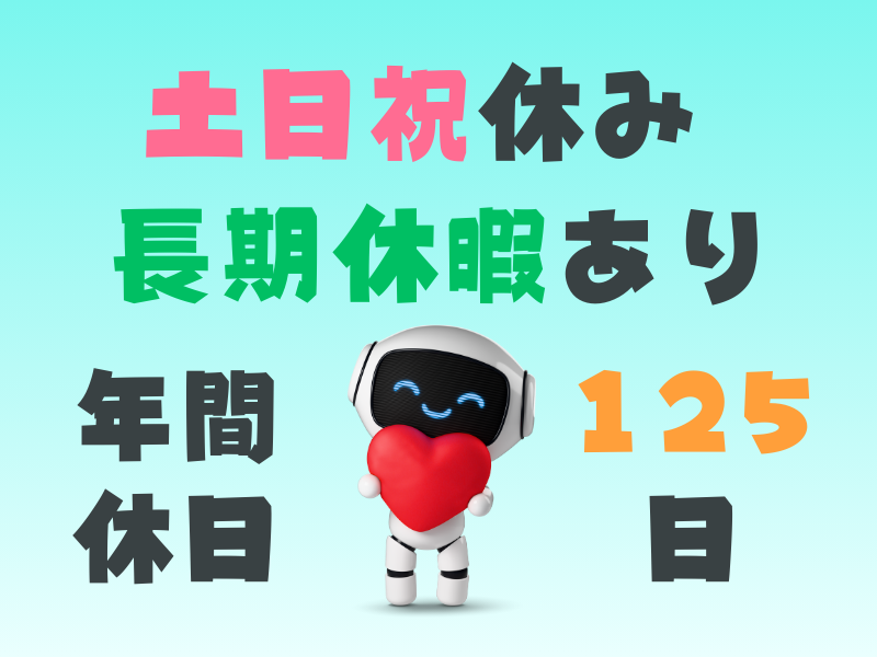 GW・夏季・年末年始の長期休暇があり、年間の休日が125日もあるのでしっかり休めてプライベートも充実!