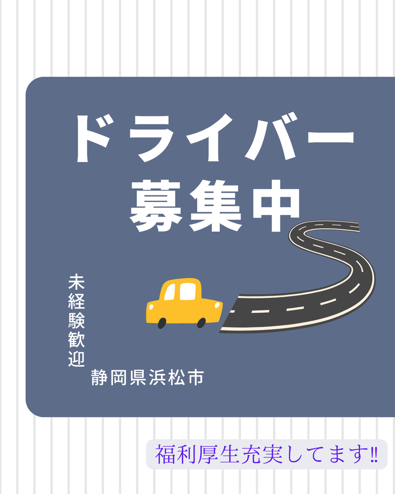 【保険制度】 雇用保険、労災保険、健康保険、厚生年金 待遇・福利厚生 【福利厚生】 【福利厚生】 ・社会保険完備 ・賞与有(夏季・冬季/最大100万円) ・子ども手当(月5000円/1人 最大4人まで/規定あり) ・遠鉄グループ従業員専用保育園完備 ・2種免許取得養成制度(規定あり) ・入社3か月月給保証 ・年次有給休暇 └入社時に5日付与/入社6ヶ月後10日付与 ・育休・産休・介護休業の取得実績あり ・看護休暇・介護休暇の取得実績あり ・慶弔休暇制度有 ・休憩室、駐車場有 ・制服貸与(特殊生地で防犯面強化) ・全車AT車(カーナビ搭載) ・財形貯蓄制度 ・贈与規定あり ・遠鉄グループ特典有(遠鉄タクシー利用2割引 など) ★社宅完備★  ̄ ̄ ̄ ̄ ̄ ̄ ̄ ̄ ̄ ・単身者→1DKマンション(駐車場付) ・家族→お家探しをお手伝い(特典あり) ※遠方からのご応募OK◎ ※住居のご相談はお気軽に!
