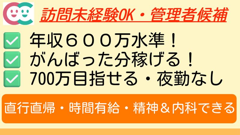 【年600万水準】【訪問未経験OK】【精神も内科もできる】【マネジメント職】