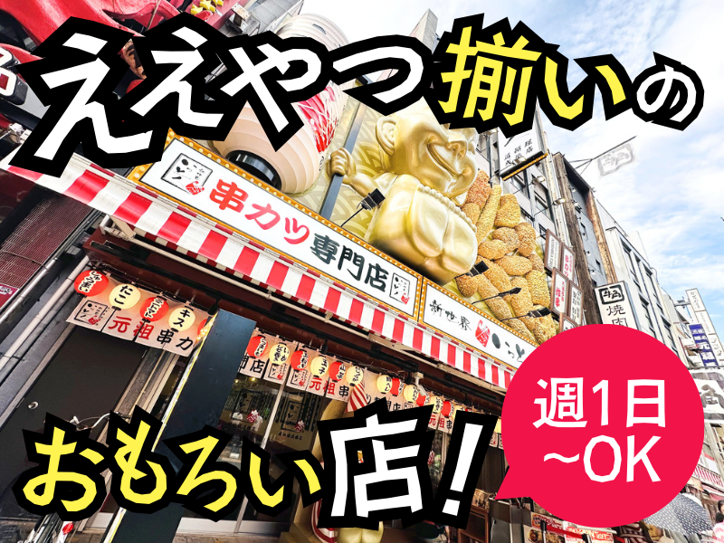 仕事内容 各線「なんば駅」、近鉄「日本橋駅」からスグ! 串カツ専門店でのホール・キッチンスタッフを募集します! ⭐兄弟で! ⭐友人同士♪ ⭐留学生同士 ⭐紹介の紹介 など いろんな境遇の「おもろい」仲間たちが 年齢・性別・学歴一切関係なく のびのびワイワイ活躍中♪ ✨ このお仕事のPoint! ✨ ━━V━━━━━━━━━━━━━━ 〈1〉週1日、3h~短時間OK! 〈2〉飲食デビューOK♪ 〈3〉平日のみ・土日のみ・扶養内もOK♪ ――――――――――――――――― ⏩具体的には ――――――――――――――――― (ホール業務) ・お客様をお席にご案内 ・料理の配膳 ・レジ対応 ・清掃 など (キッチン業務) ・食材のカット ・簡単な盛り付け ・簡単な調理補助 など 飲食デビューや調理未経験も大歓迎! もちろん経験者は優遇いたします! ✅まず始めは… ホール業務は、テーブル番号を覚えるところから! メニューは、配膳しながら覚えていきます。 キッチン業務は、食材のカットからお教えします! 調理の経験はなくてOK!まずはできることから お願いしていきます♪ ――――――――――――――――― ⏩働き方は生活優先で! ――――――――――――――――― 11時~24時の間で、週1日、3h~OK♪ 「大学の合間に」「子供のお迎えまで」 「掛け持ちしながら稼ぎたい!」 などなど、働き方はなんでもOK! 平日のみや土日のみ、扶養内もOKなので まずはお気軽に面接にてご相談してくださいね! ――――――――――――――――― ⏩美味しいまかないも! ――――――――――――――――― 串カツのまかないが食べられます! 休憩が被った時には、料理上手な社員スタッフが まかないリクエストに応えてくれることも♪ ――――――――――――――――― ⏩一緒に働くスタッフについて ――――――――――――――――― 大学生さんや専門学生さん、 子育て中の主婦さんやWワークで働く フリーターさんが活躍中! ベトナムやネパールの留学生さんも活躍しています。 お客様は地元の方や海外の観光客の方が多く、 語学の勉強にもなりますよ! ――――――――――――――――― ⏩スタッフインタビュー ――――――――――――――――― 大学と両立しながら働きたいと思い、 いっとくに応募しました。 飲食の経験は全くなかったのですが、 未経験でもわかるようなきっちりとした研修や 店長や社員さん、先輩が近くに居るので スグに聞けてとても働きやすいです。 髪色も自由だし、まかないも食べられるので 食費も浮いて助かっています。 地方から出てきて、いろいろなバイトを 経験しましたが、うちが大阪に出てきて はじめて「楽しい」と思えたバイト先です。 これからも長く続けたいと思います。 (20代スタッフ) ――――――――――――――――― ⏩いっとくについて ――――――――――――――――― 当店は大阪市内に14店舗展開中! 美味しい串カツを提供しています。 近くのお店にヘルプに行ったり、飲み会で 交流したりするほど、店舗を越えて仲良し♪ フレンドリーな人が多く、垣根も一切ございません! ぜひ、お気軽にご応募ください♪ ▼ ☆面接時の【履歴書不要】 ☆TEL応募可能⇒【0669206077】 ☆私服面接OK!
