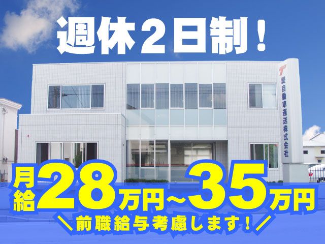 【保険制度】 雇用保険、労災保険、健康保険、厚生年金 待遇 ◇社会保険完備(健康保険、厚生年金保険、雇用保険、労災保険) ◇昇給あり(随時) ◇賞与年2回(業績に応じる) ◇制服貸与 ◇健康診断(年2回) ◇資格取得制度有(費用は会社負担) ◇誕生日にクオカードプレゼント ◇駐車場完備 ◇マイカー通勤可、バイク・自転車通勤可 ◇自動販売機あり ◇有給休暇有 ◇慶弔休暇有 ◇時間外手当有 ◇休日出勤手当有 ◇社内表彰制度有(成績優秀者表彰・永年勤続表彰) (Gマーク)安全性優良事業所に認定されました 堤自動車運送(株)は2018年12月13日、全国貨物自動車運送適正化事業実施機関である(株)全日本トラック協会(坂本克己会長)より安全性優良事業所の更新認定を受けました。 グリーン経営認証取得しました 堤自動車運送(株)では、2022年3月10日にグリーン経営認証の更新認定を受けました。 ぐんまスタンダード 環境GS認定 堤自動車運送(株)では、2022年4月1日に群馬県環境GS事業者に継続14年目の認定を受けました。 働きやすい職場認定制度取得しました 堤自動車運送(株)は、(財)日本海事協会「運転者職場環境良好度認証制度」一つ星の認定を受けました。