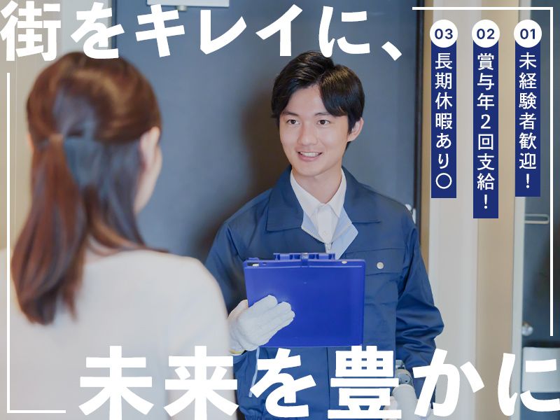 仕事内容 _/_/_/_/_/_/_/_/_/_/_/_/ 技術をその手に—— 一生モノのスキルを磨ける場所 新しい自分を見つけてみませんか? _/_/_/_/_/_/_/_/_/_/_/_/ …求人のPOINT………………………… ✅残業少なめ!長期休暇あり ✅未経験入社9割!20代~40代が中心 ✅現場は東京(23区内)・埼玉がメイン ✅賞与年2回支給!頑張りを給与で還元 …………………………………………… 【仕事内容】 排水管清掃や外壁洗浄をお任せします! □排水管清掃 集合住宅の下記排水管清掃 ・台所や浴室、洗濯場、洗面台など □外壁洗浄 大規模修繕工事中のマンション ビルの外壁の高圧洗浄を行います。 <対応エリア> 東京(23区内が6~7割)・埼玉が中心です。 ※千葉・神奈川の現場は少なめです。 <未経験でも安心の教育体制> スタッフの9割が未経験スタート! 新人教育には慣れているのでご安心ください。 入社後は、簡単な研修から始め、 まずはサポート要員として 一緒に現場に同行します。 一連の流れを覚えてもらったら、 できる軽作業から徐々にお任せ! 未経験からひとり立ちまでは おおよそ半年くらいが目安です。
